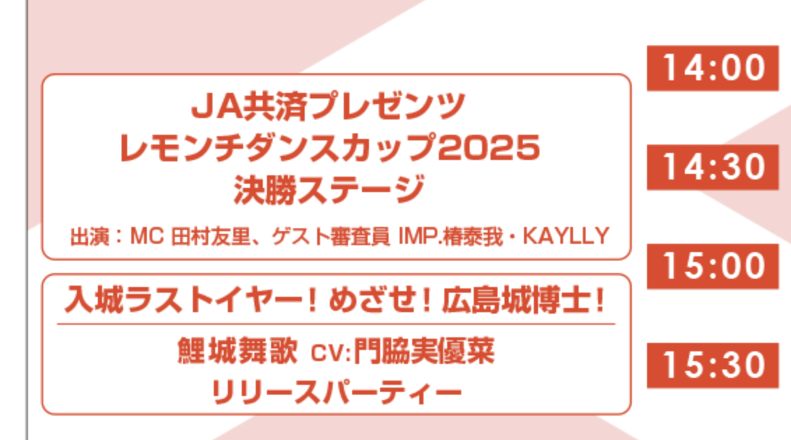 出演時間→https://foodfesta.jp/map/stage_program.php 鯉城舞歌 CV:門脇実優菜HIROSHIMA フードフェスティバル出演します。10月29日発売の「じょうじょう!最城級の〜Koi〜」CDを先行販売!!1枚1000円税込です!! 3枚購入の方に1枚その場でサインを書いちゃいます!!是非是非、遊びに来てCDゲットしてください!!